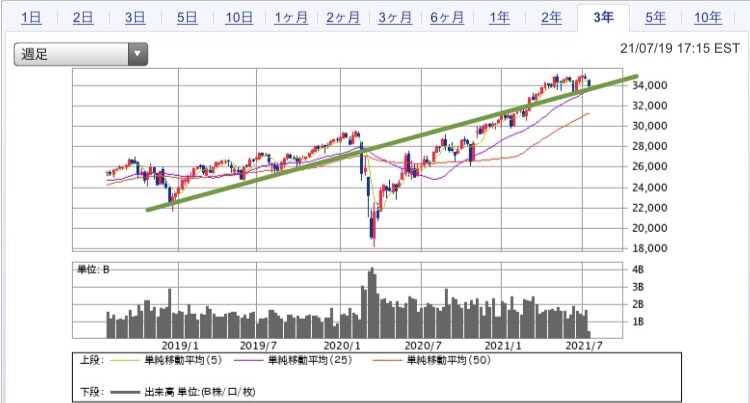 高値更新をすると大きく落とすことはあっても、しばらくは34,000よりは上でヨコヨコの想定。