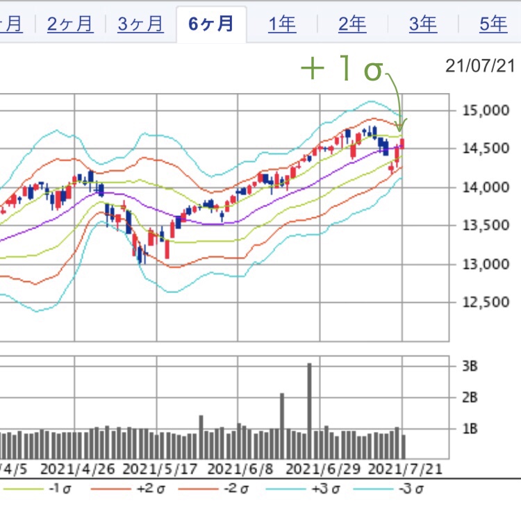 +1σまでは上げる予定。そこからまた下げることはあっても下値は切り下げず、上昇してくる想定。