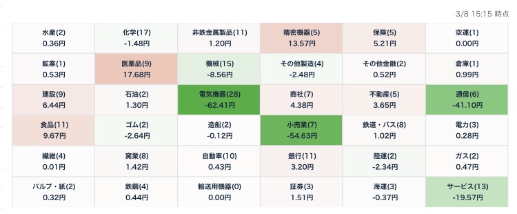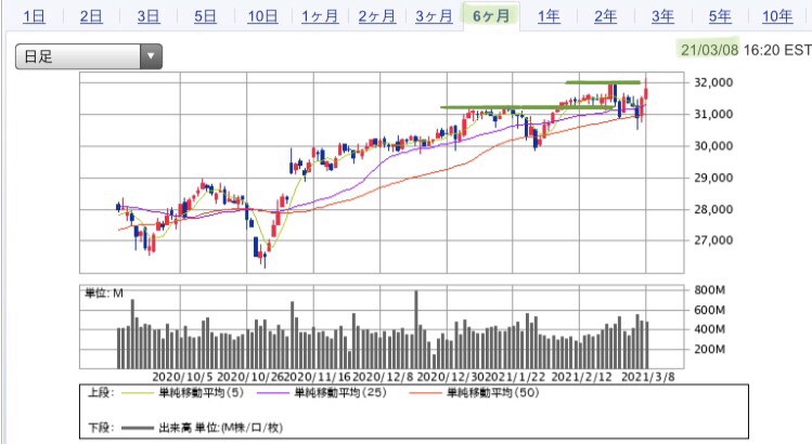 今日のチャート推移(2021/3/8)