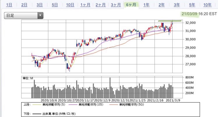 今日のチャート推移(2021/3/10)
