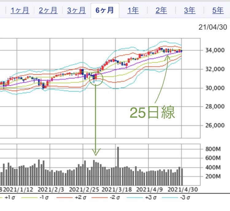 日経より早く、3月下旬で−3σまで落としている。